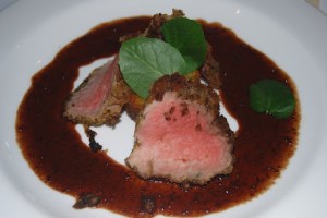 Oven Roasted Rack of Lamb with Apple Couscous and a White Peppercorn, Port Wine Jus. Served with a 2002 “Deux Terres”, Dry Creek Valley Cabernet Sauvignon which went very well with the lamb. However, I liked the 2004 Cab slightly better with the lamb.