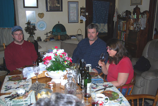 And Mac was there too. But to our delight and surprise, Geno and Debra arrived – to try some of his bread and to return a paella pan he had borrowed. When they called, I didn’t tell them we were about to eat dinner. But then I knew they both liked wine and lamb. We were glad to have them.