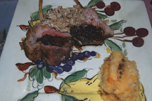 Lamb with Red Wine and Balsamic Vinegar Reduction, Brown Rice with Scallions and Mushrooms and Mashed Root Vegetable Combination. Such an awesome dinner and easy to prepare. It just takes some time.