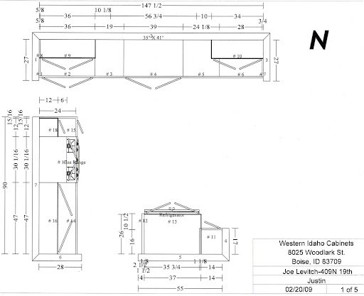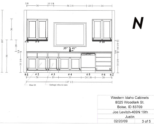The Sink (North Wall) and the placement of the Dishwasher. Note the cabinets and drawer space.