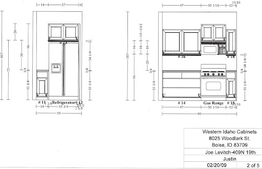 Elevation view of the major appliances: Stove, Microwave, Exhaust Hood (West Wall) and Refrigerator (South Wall)