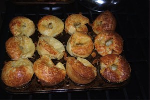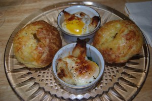 And here are the Popovers with Gruyere Cheese in happy land! Happy Popovers – Happy Robin! These would really be great at a wine tasting filled with Tuna Salad, Ham Salad, Shrimp Salad … Use you imagination!