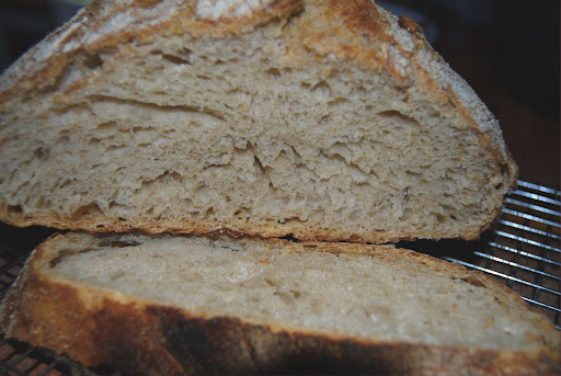 The bread has wonderful crumb, open and fresh. Chewy, but not tough. A crunchy crust.