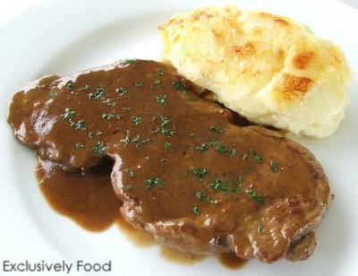 OK, so it’s a nice “fall” day outside – 83 degrees, 25% RH and 4mph winds – and I’m sorta kinda looking forward to the fall temperatures. And with those temperatures comes fall foods. How about Steak Diane, originally made with wild game. From the website, Simply Recipes, we find this description of the restaurant favorite,