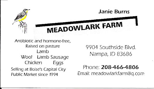 Here is the first local business that specializes in lamb and lamb products. Before Robin and I started to buy our lamb from a 4-H student we know, we bought it from Meadowlark Farms. This is very good lamb.