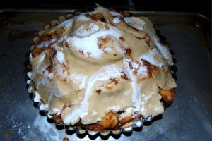 And then after about 50 minutes in a 350 degree oven, one ends up with this gastronomic treat!! Great apple flavor (Granny Smith, Winesap and a variety of red ones) and the sweetness of the brown sugar and cinnamon. YUM-O!! Add to that a piece of Washington cheddar, aged for 2 years, Natural Cougar Gold – from the Washington State University Cougars via Jerri and Roger Nelson – and you have a delicious blend of flavors!