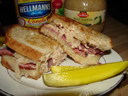 own Pastrami!!! Why? Because it is an integral part of this sandwich – your own smoked pastrami. (Photo to the right is their Reuben) OK. So bring on the brisket. The recipe and the procedure is all above in the link provided. And I think when I do this, I will make half a sandwich as directed by Smoking-Meats and the other half in the traditional meathod – Russian Dressing and carmelized onion. No mayo or 1000 Island. I think that a fair comparison. I will also make my own Jewish Rye bread. That will probably make a now World Unknown Reuben into a World Renown Reuben. And I might even have some taste testers try it too. Right Michael Boss (Behind the Menu) and Chef James Grimes and Joe Levitch and Geno Cantrill? Oh my, am I ever digging a deep hole. Geno – you coming to Boise anytime soon? But, that’s the fun in all of this. Cheers!
