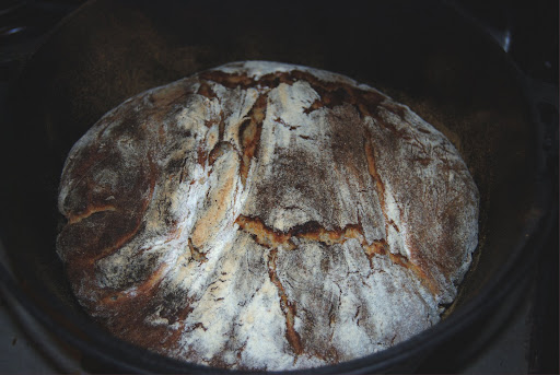 This is the bread as it came out of the oven and is still in the cast iron pot at 500 degrees F. Do Not Touch The Pot!! It Is HOT!
