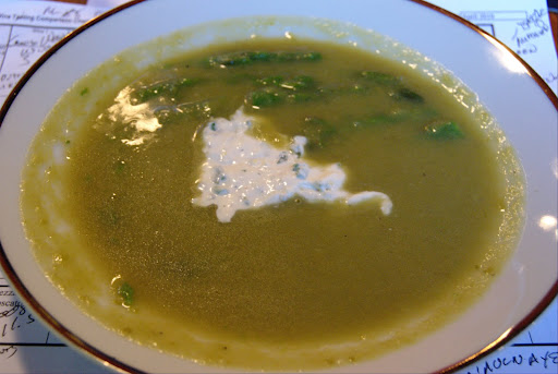 The soup recipe: http://www.foodandwine.com/recipes/asparagus-soup-with-lemon-herb-creme-fraiche