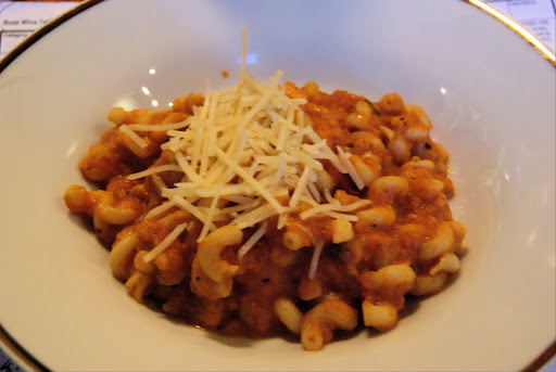 With the Nick and Toni’s Pasta ala Vecchia Bettola, we had a good, but not exceptional, 2003 Travaglini Gattinara, 12% (16). This wine would go well with a spicy Veal Parmigiana or Lasagna. It did go very well with this pasta.