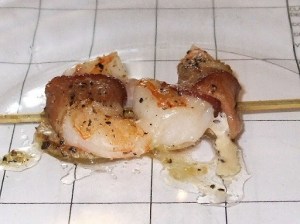 Oh my! To start, Debbie prepared Shrimp and Bacon Brochette that was delicious. Of course, it has bacon on it! This went well with the 2007 Tapena Verdejo, 12%, $11.00, (17). This wine, however, tended to over power the bacon, of all things.