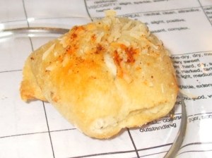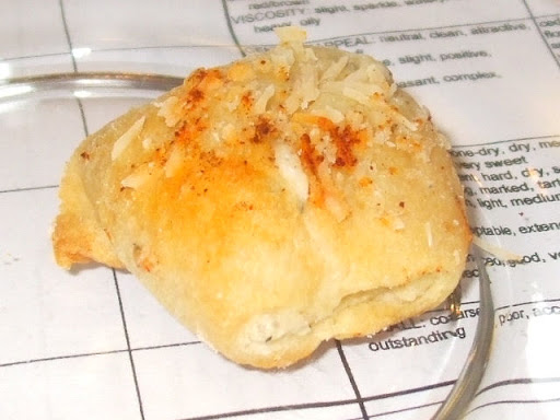Here are Parmesan Bites. We had a 2007 Canfeixes , 12%, $20.00, (17) with these. Vanilla and sulfur on the nose. Soapy.
