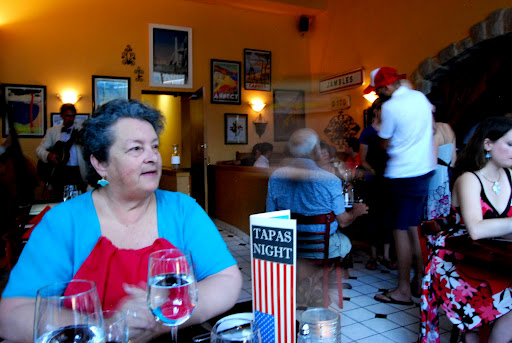 Ah yes, another delightful night at Le Café de Paris and the First Thursday Tapas Night. Robin is intently listening to the music. A very different venue … but a very good one. Here is what Matheiu Choux, Owner, said,