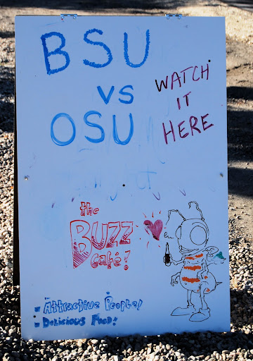 It was a beautiful fall day/evening in Boise, except for the Oregon State fans. Even the sky reflected its support of BSU. Look at those colors! BSU won the football game 37 – 24. But it was a hard fought game for both sides. BSU is now 3 – 0 on the season. Normally, we would watch the game at home. But the hype started at 7:00am here in Boise and went right through 9:00pm. ESPN had the Gameday Program here. So, we decided to watch the game at one of the local bistros.