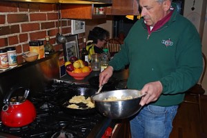 Joe is frying the latkes.