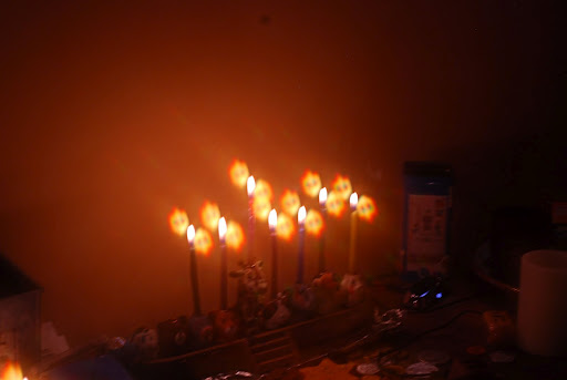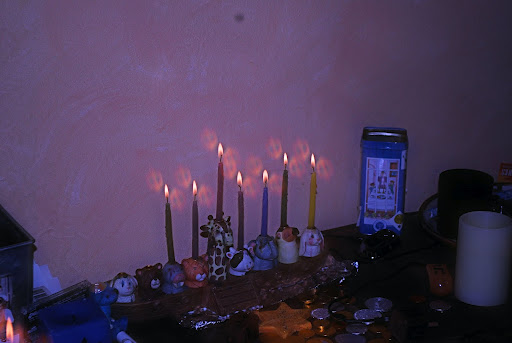 The Altar candles were photographed through special glasses that formed a driedel. Here is the history of the dreidel.