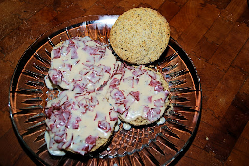 Last nights dinner and dessert, see Robin’s Apple Tarte Tartin, was really good. But breakfast this morning, topped it off. She made a variation on Martha Stewart’s Biscuits by adding flax seed and whole wheat flour. Then we added Creamed Chipped Beef to the biscuits. A good breakfast! Now to go and work it off by riding on the Greenbelt! Wish me luck and cheers!
