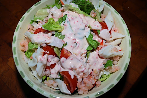 We found this salad dressing at Sushi Joy – Chinese and Japanese Cuisine in Boise, and we do really like it. It is a pretty easy dressing and gives a salad a unique Asian or Japanese – Chinese flavor. I have arbitrarily named it Asian Salad Dressing and you can get a copy of it by following the link. We made a seafood salad – salad shrimp, crab, Romaine lettuce and tomato – and then used this dressing. The restaurant also uses a very similar dressing on their House Salad, which is simply lettuce and tomatoes. When we asked for the recipe they smiled, and said “Mayonnaise and lemon juice.” We said, “And sesame oil and ginger?” The owner just smiled and nodded. I love it when they do that. Now we have to figure out the amounts. It took three tries, and the third time, “Eureka! We found it!” Give it a try and see what you think. Cheers!