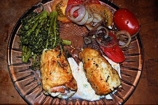 Pretty good for a Meatless Monday. But then tonight, we pushed the thresh hold with chicken and prociuto. Here is a photo and the menu –