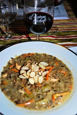 A wonderful evening at the Buzz exploring the wines of the Colchagua Valley of Chile and the Mont Gras Winery. Overall, a high scoring wine dinner and wines. There are not many times I give a wine a score of [20] out of [20], but the wine pictured to the left is one of those. A rich, deep purple cab and wonderful bouquet of spice, pepper and huge cherry. Long lasting without the “barbs” of some cabs. This was an awesome wine. Enjoy the photos and our dinner. Especially look at the Tommy’s Meatloaf below and my comments.