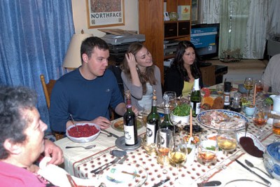 Mac, Marnie (holding the chocolate turkey) and our friend Margaret.