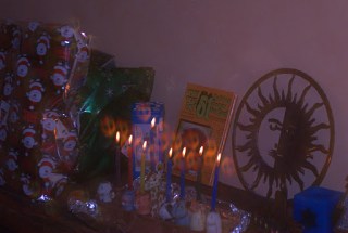 The Dreidel Faces in the Hanukkah Candles. (Enlarge this photo by Left-Clicking)