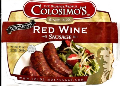 This is the label from the wine sausages that we grilled. These are delicious and we got them from our local Costco. Along with the onions and the kraut, we also had some Giuliano Muffuletta to go with the sausages.