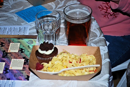 The Fettuccine Plate. There was also Pizza Swirls and Chocolate Cup Cakes. Beer and wine were also served. These were all produced locally!