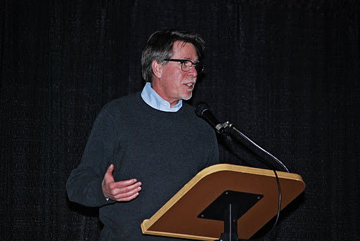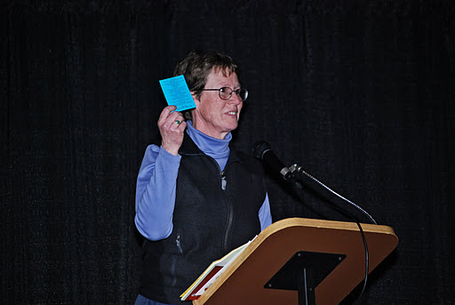At the end of the “talks”, the floor was opened for questions. Here Guy and Amy converse with the floor. Guy is in deep thought. Janie moderated this secession of the program.