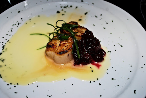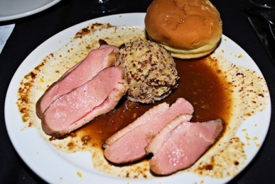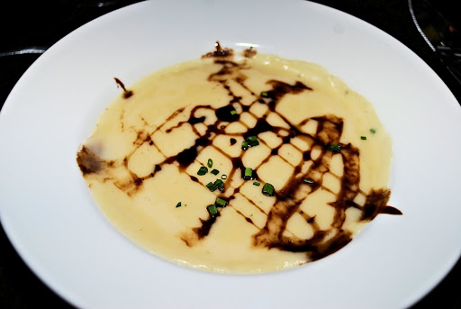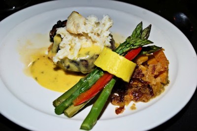 The soup was made from chicken stock, poached garlic and then reduced. Potatoes were used for thickening and then a reduction of balsamic was added. The soup was then finished by a sprinkle of fresh chives. Tended to be a little spicy, but delicious. And no, the garlic was not over powering. The only drawback that I found with this dish, I had no bread to “clean” my bowl. That’s a German thing! Bread was lacking with the meal. The soup and the wine were both well balanced. Cost of the wine is $10.00.