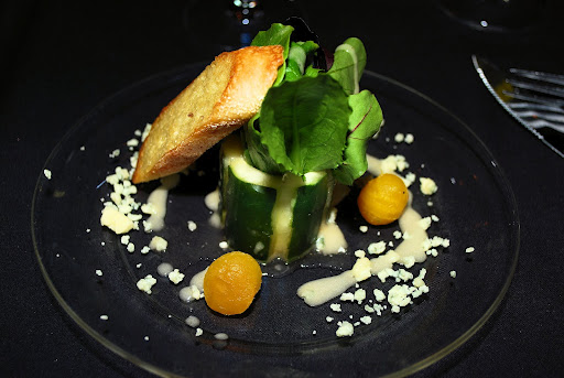 The little yellow beet in this salad were delicious.Great blends of the vegetables with the wine, which had overtones of dark chocolate and a slight bitterness. However, the earthiness of the beets, even though they were small, did tend to over power the wine.