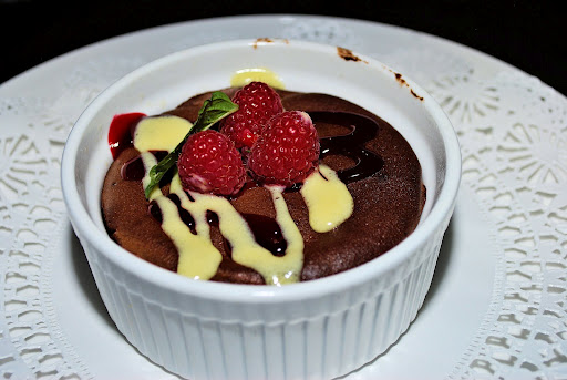Sink your taste buds into this one, but don’t burn your mouth. Rich and awesome warm chocolate tart with the tartness of the raspberry hidden in the background. Then add to that a fine glass of the Ice Wine and you have an epicurean delight! This is one of Chef Jack’s favorite desserts and it shows.