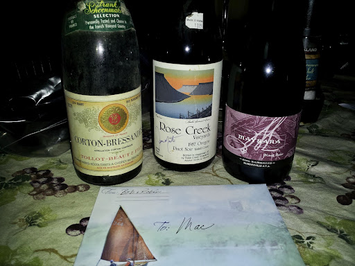 On Tuesday, Feb 21, Robin and I prepared his dinner with help from Marnie – a wonderful green salad – and Margaret, a great berry pie and fresh whipped cream. The wines that we had are also listed. The phrase, “OTH?” means “over the hill?” Actually, all of these wines turned out to be awesome. Here, take a look!