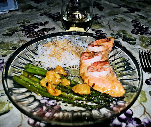 Here is the recipe for the Baked Salmon with Honey/Dijon Sauce that we had tonight. It was very, very good! And it is really very easy to do. We had it with Orange Infused Braised Asparagus and Steamed Rice. Use some of the sauce over the rice. Then serve this with a wonderful 2010 Indian Creek Muscat Canelli.