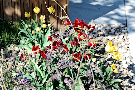 And just to prove that it is Spring in the Treasure Valley, here are Gennieve’s flowers. Wisteria, and red and yellow tulips.