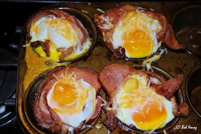 Here is a recipe that you can make in about 20 minutes and feed a host – many – people. Really easy to do. I got the recipe from one of the many food/recipe blogs that I subscribe to. In this case, Secret Recipe Club. It’s free to join. Enjoy this breakfast! The first photo is when I took them out of the oven. The second, the cups are plated.