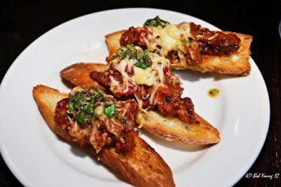 chorizo, sweet pepper and onion, chimichurri bruschetta
