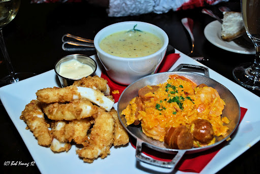After going to the DotDotDot program, BSU Graphic Artists present their Senior work, we drifted down to Le Cafe de Paris and had an awesome Tapas night dinner. Congratulations to our friend Shawn Carman for a successful showing. You are one talented young man. Both events were in the Adelmann building pictured here.And now, our dinner in pictures. Enjoy the photos. We enjoyed the dinner!