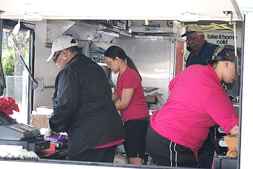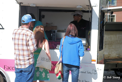 The photo to the left is Peach Cobler (wonderful!) at Brown Shuga Soul Food. They do sponsor me to take photos of their food truck. You can get a general idea of the event from the photos that follow. Enjoy and if you missed this one, look for the next rally on the 2nd Friday of June. It is well worth the trip and the food is really diverse and wonderful.
