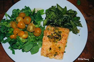 Combine all ingredients in a bowl. Marinate salmon for 45 minutes. Broil in the marinade until the salmon comes apart easily.