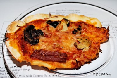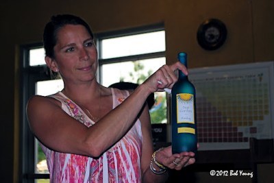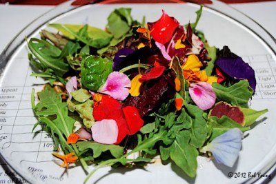 Another great monthly wine dinner at the Buzz – Edible Flowers and Wine! I’m glad that Cristi duplicates the menu and wines two nights in a row – Tuesday and Wednesday – so that we can always make one. Tuesdays seem to work best for us. Here Peggy displays the 2010 Sun Garden Riesling that was a good wine. We bought some. Look at what we had for dinner and the wines to accompany the courses and all for $15 per person. Thanks, Cristi and Tommy for an awesome dinner.