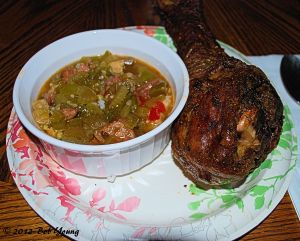 From Brown Shuga Soul Foods, Fresh Made Gumbo and Smoked Turkey Legs. Yvonne, owner of Brown Shuga, is especially known for the way she prepares the turkey legs. They are awesome. If you want one at this affair, you must go early. She usually sells out.