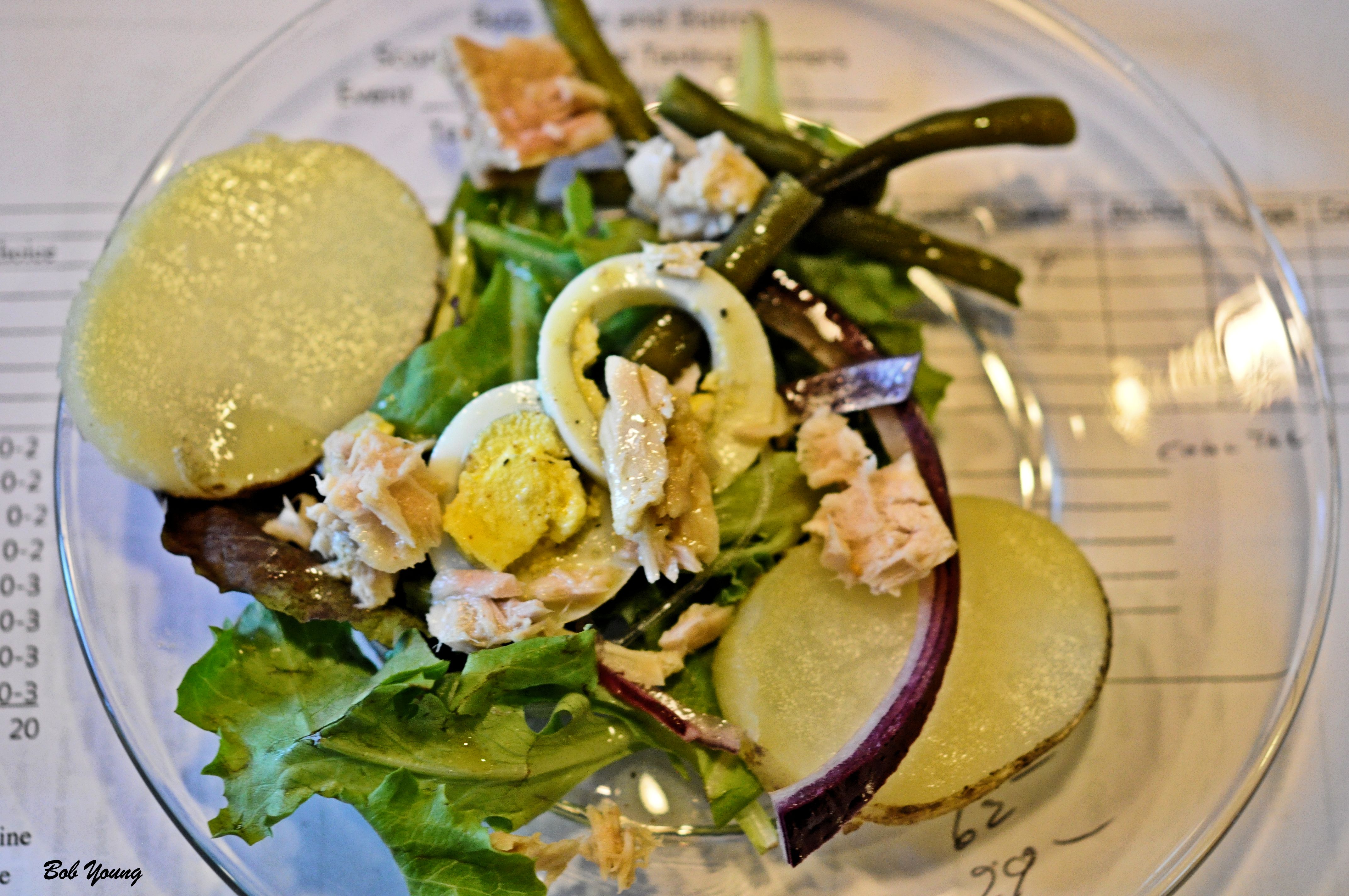 Salad Nicoise (Could have used a little cracked pepper and olives. But still good.) 2012 Sable d’Azure 12.5% alc blend of grenache, mouvedre and petite syrah this went well with the salad