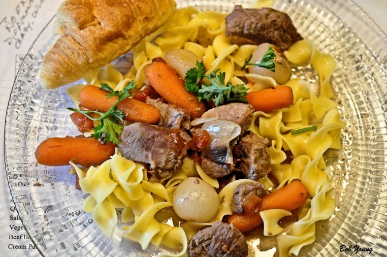 Beef Bourgogne (This was the best part of the dinner. Full of flavor and seasoned perfectly!) 2010 Gigondas 14.5% alc. a big red that went very well with the beef and onions. [17] $22.00