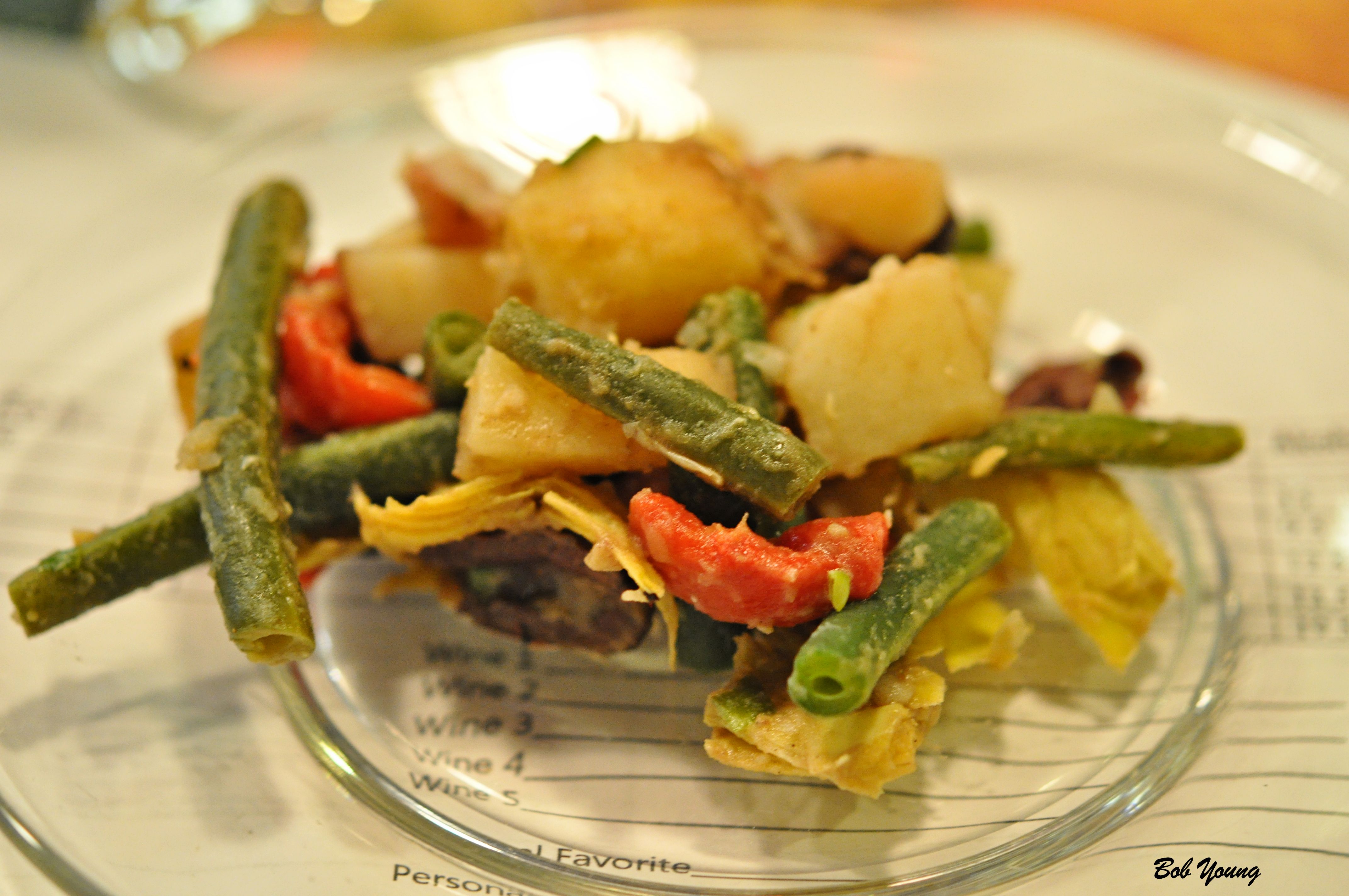 Hungarian Potato Salad 2001 Bull’s Blood 12.5% alc. This was a very light version of this wine. We have had it before and it was full bodied.