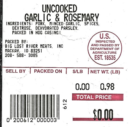 Big Lost River Meats 410 Pine Street Mackay Idaho 83251 (208) 588- 2849