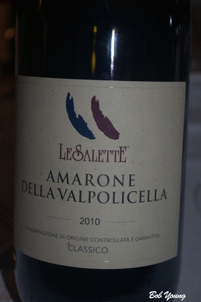 Le Salette Amarone della Valpolicella Classico Went superbly with the quail and risotto. From Verona, “Valley of many Cellars”. Superb, full bodied red wine at 15% alcohol.