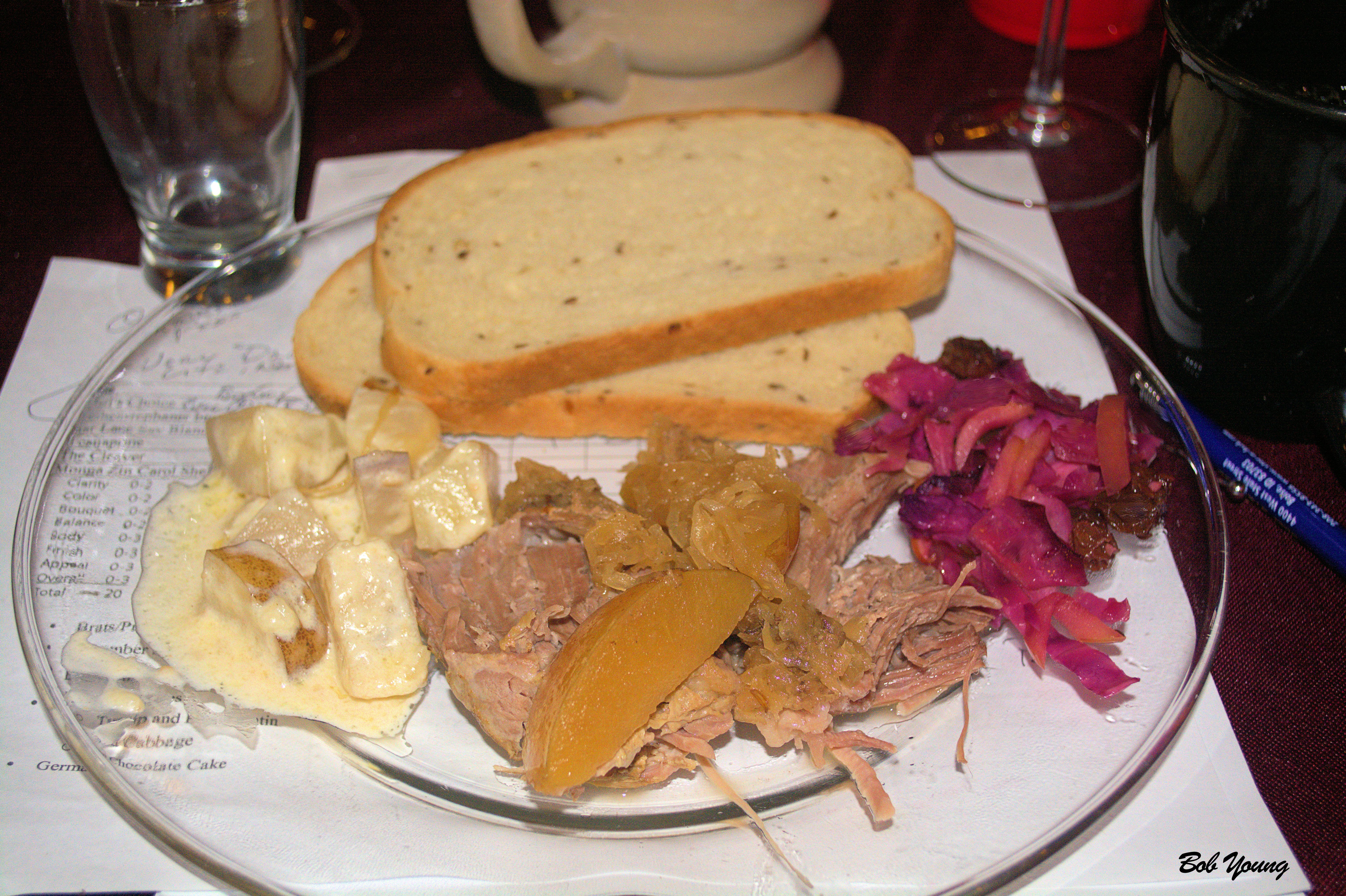 Pork and Apples with turnip and potato gratin and red cabbage 2011 Il Canapone 14% alc an OK wine that went pretty good with the pork [16] $18.00