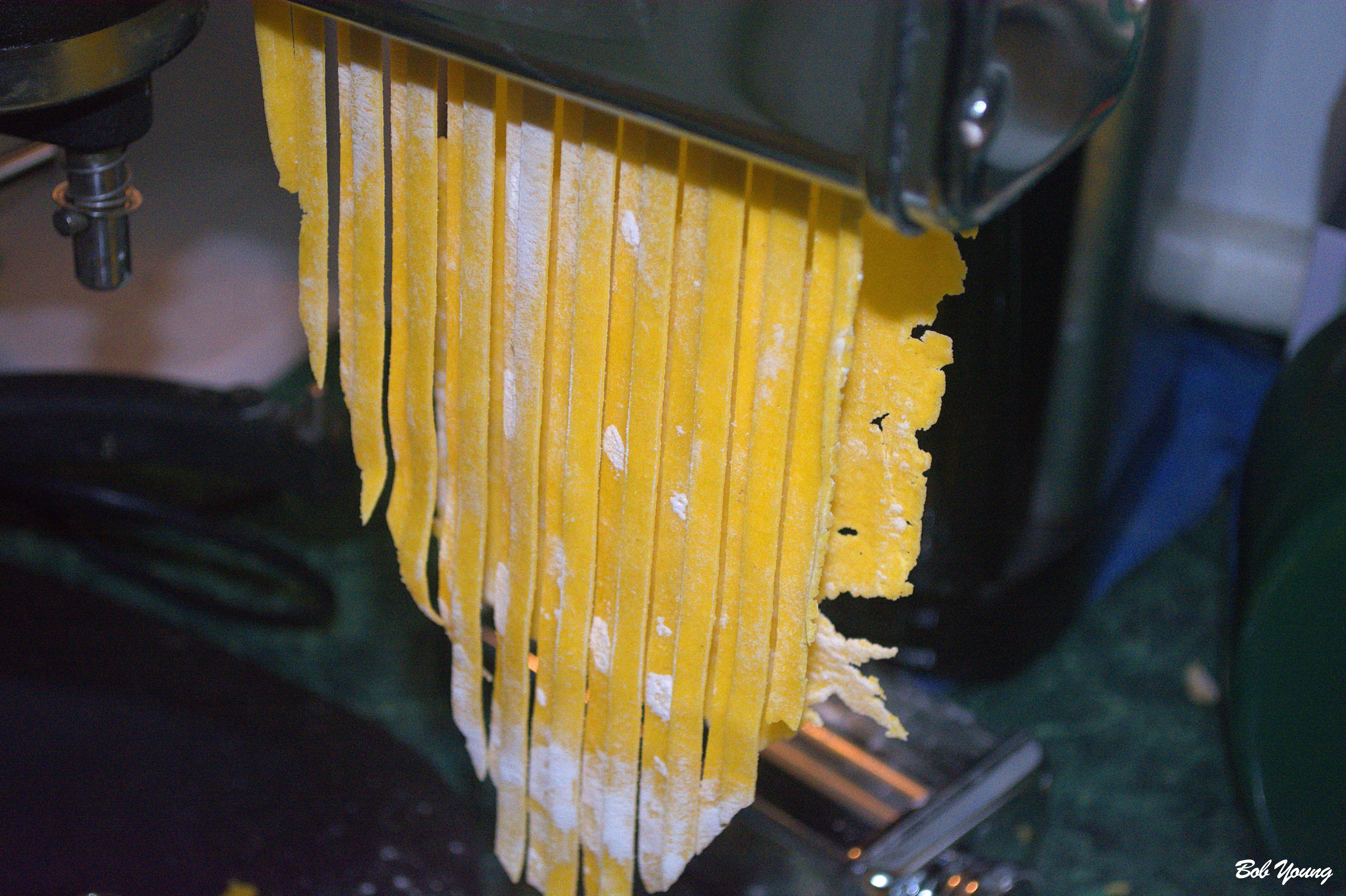 Increase the setting to number 2, and runn the dough through the machine again. And Voila! Fettucin