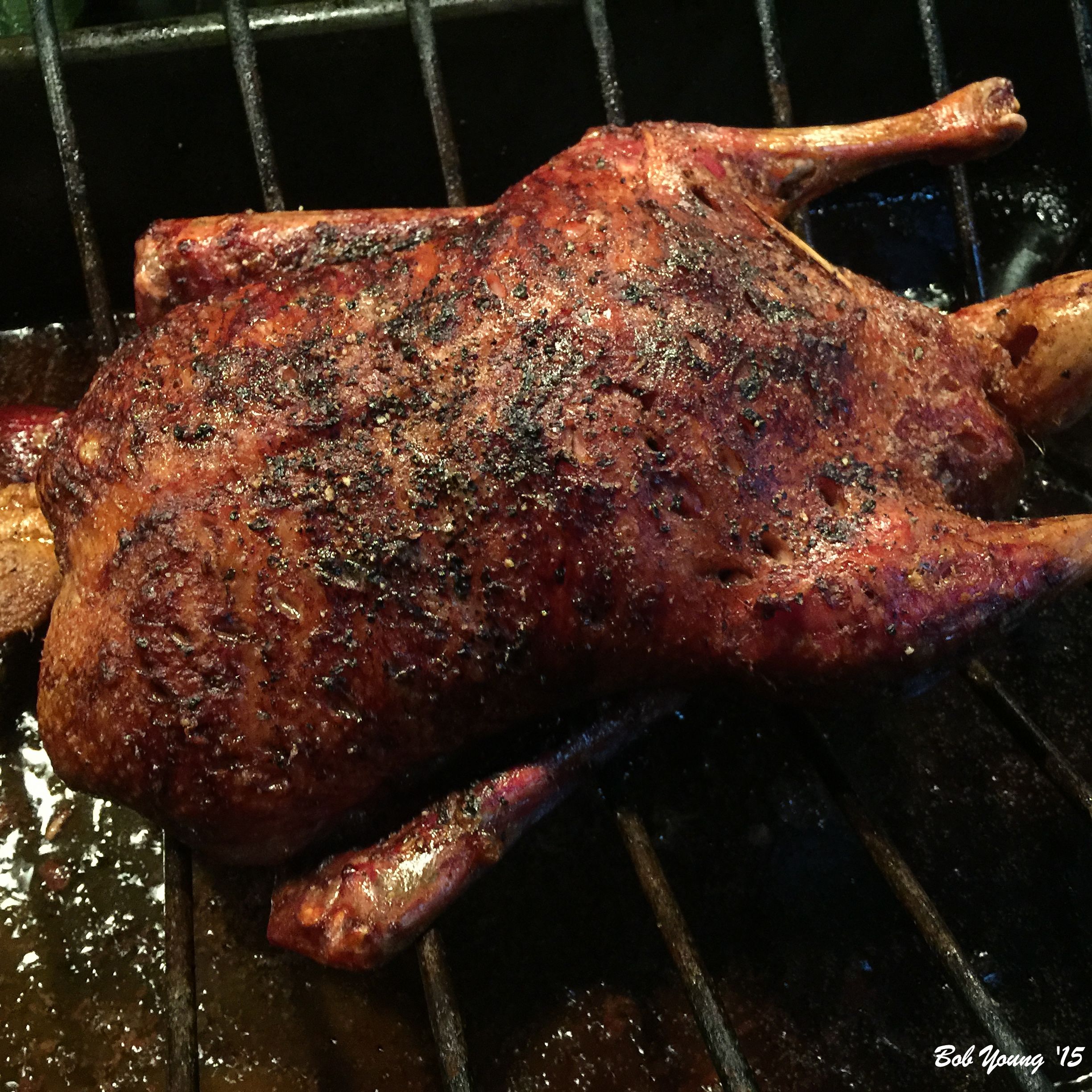 5 Hour Roasted Duck After 5 hours, this duck is crispy, moist and generally not greasy.